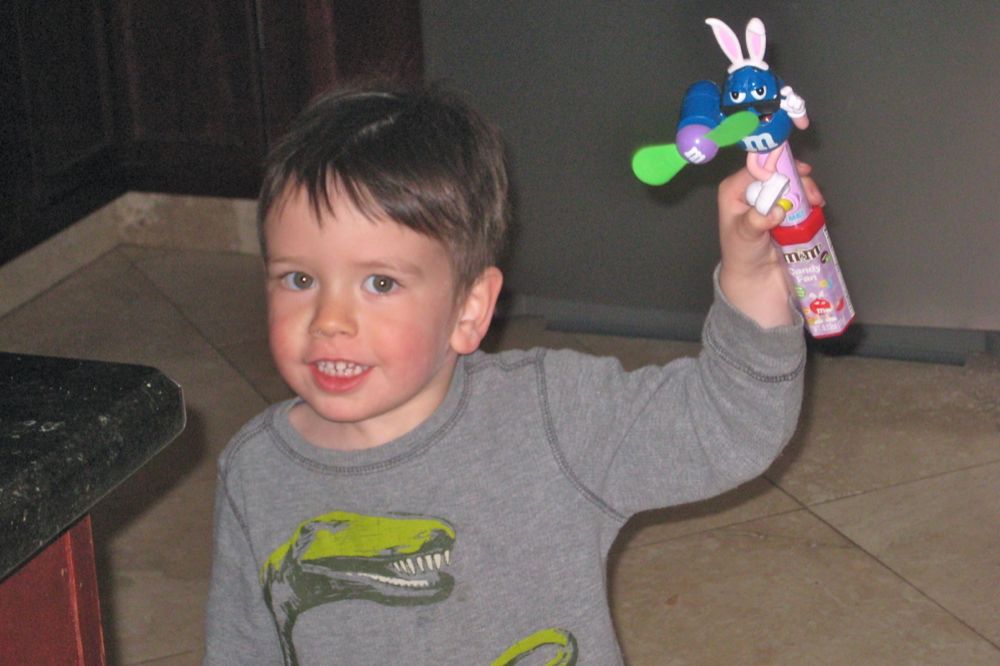 Here he is showing off his "flashlight". We can't convince him its a fan for some reason.
