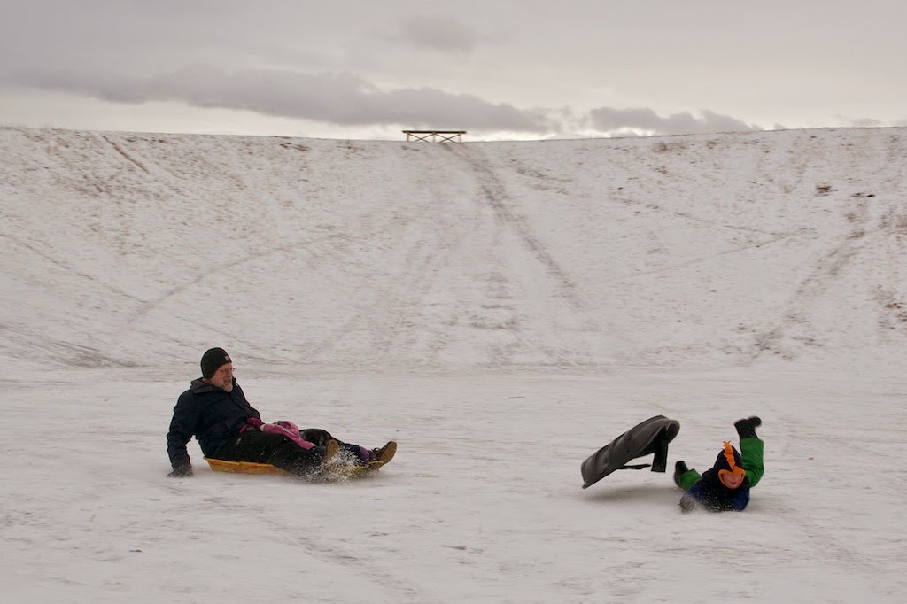 And an action shot of Matthew's first big tumble.  Next Christmas the kiddos are getting winter helmets from Santa as this icy hill causes mommy heart palpitations!